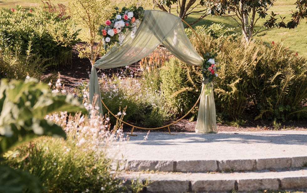 On a warm, summer evening in Kirkland, N & M tied the knot in front of family and friends in the gardens of the historic Heritage Hall. Neither had any idea what the other was wearing until the day of their wedding, but to their surprise, both gowns were floor-length and adorned with beautiful beadwork and delicate lace!